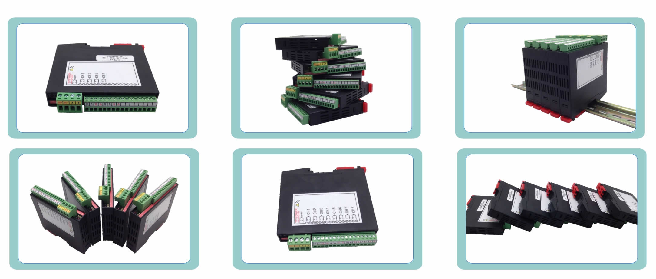 超薄型KH7018多通道模擬量輸入采集模塊,可實現對工業控制等現場的多路模擬信號的數據采集(如:溫度、濕度、壓力、流量、線性電壓、線性電流、電池組參數等參數檢測);廣泛應用于石油、冶金、制藥、食品、工業自動化、倉庫、圖書館等領域,相對于市面同類產品具有體積小巧、超薄模塊機身、高精度、高隔離,支持多通道輸入,采用標準MODBUS-RTU協議實現RS485總線傳輸。