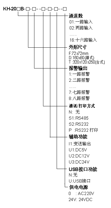 外型尺寸:D型160×80mm;兩個繼電器報警輸出;USB接口功能;220VAC供電電源
